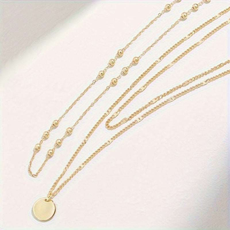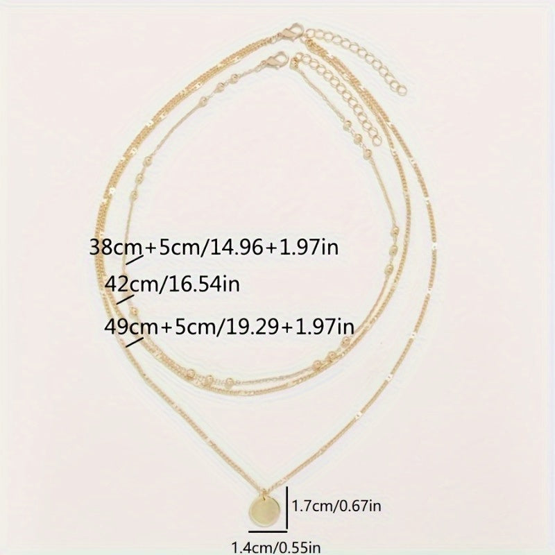 Step into a world of modern elegance with the Tri-Chain Chic necklace set. Crafted for the woman who values simplicity yet desires a statement piece, this three-layer necklace effortlessly combines personalized charm with versatile styling. Perfect for any occasion, from casual days to evening outings, this necklace set is designed to complement your unique personality and enhance your look with ease.