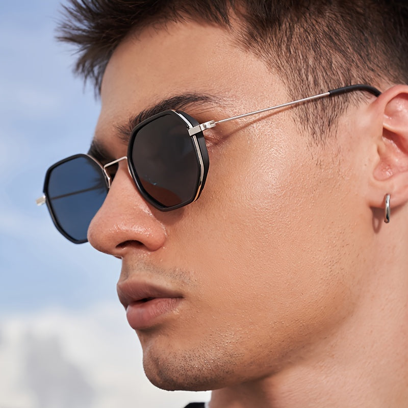 Elevate your style with GeoTrend, the perfect blend of contemporary design and timeless elegance. These men's geometric frame glasses offer a bold, fashion-forward look, designed for those who want to make a statement wherever they go—whether it's for travel, casual outings, or simply standing out in a crowd. With their unique double beam top and sleek metal frame, GeoTrend glasses will not only protect your eyes but also enhance your style.